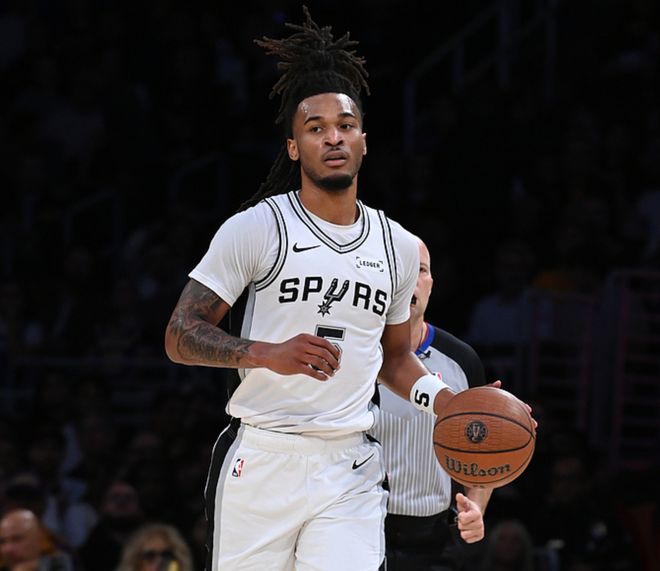 卡斯爾是2024年的4號秀,本賽季他場均能得到18.2分6.1板7.3助1.5斷0.3帽,命中率50%,他打球冷靜、聰明、強硬,他被馬刺視為建隊核心之一。